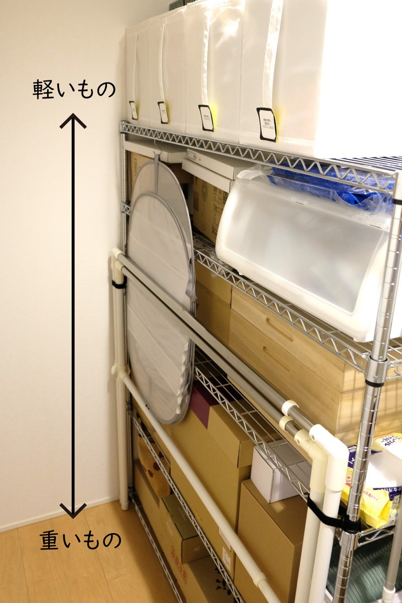 重いものは下、軽いものは上に収納すること⚠️